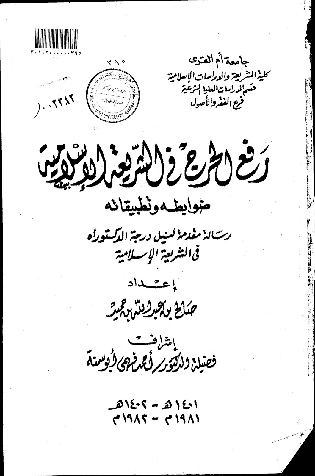 كتاب رفع الحرج في الشريعة الإسلامية دراسة أصولية تأصيلية PDF